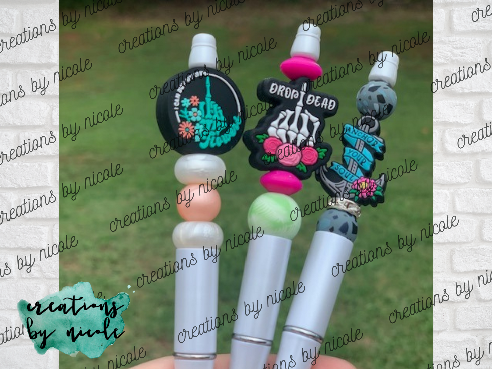 Beaded Ballpoint Ink Pens - Buy My Own Flowers, Anchor Your Soul, Drop Dead
