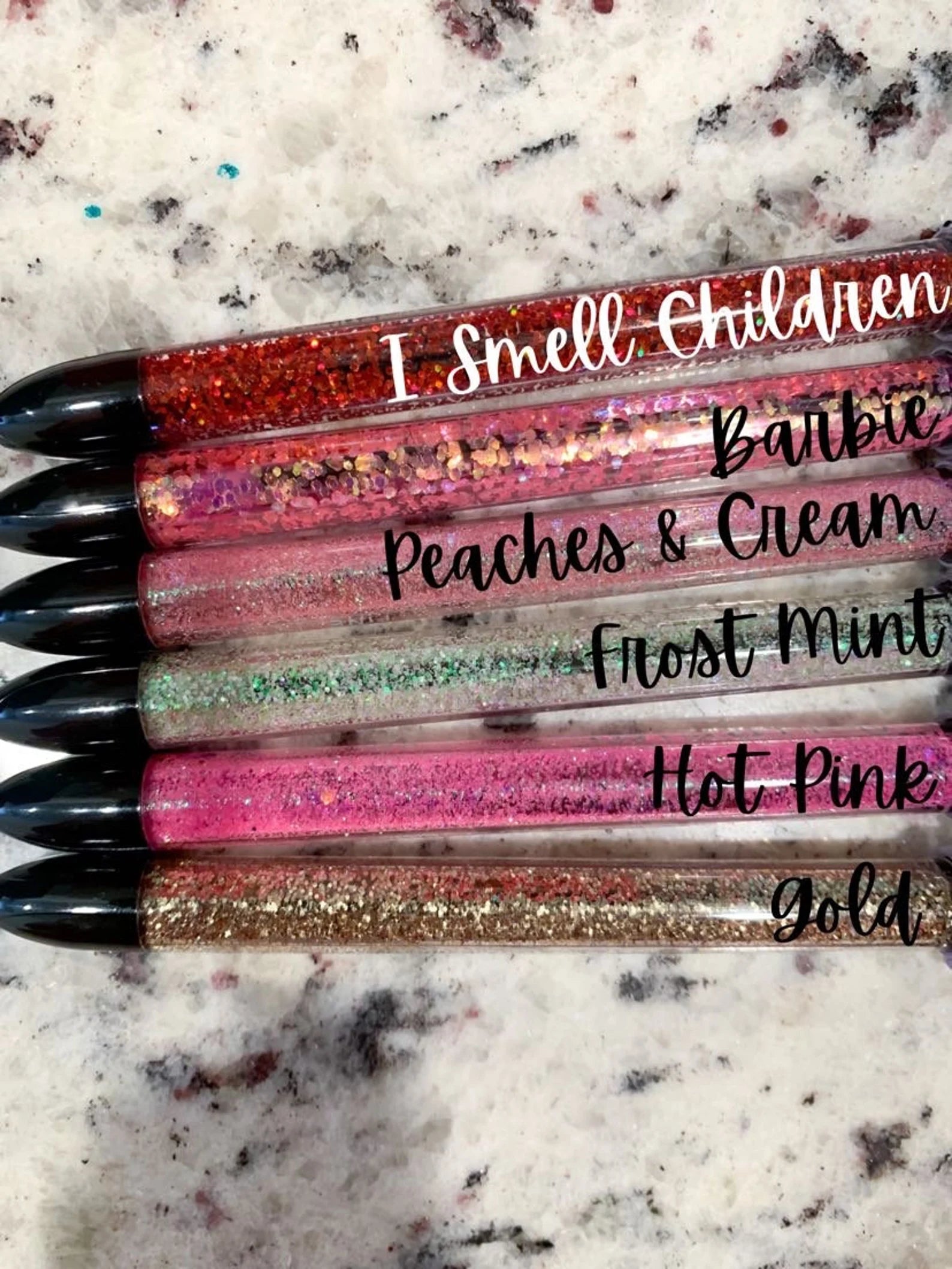 Perfect smooth writing pen for all office settings or journaling to add a little bling! Pen has a lid and a clip. All glitter is encased in the pen so the pen is smooth all over. Ink is REFILLABLE.