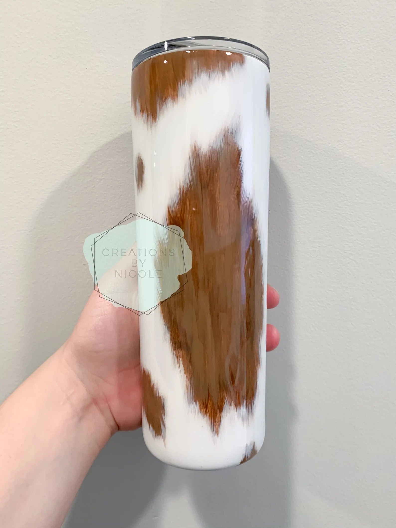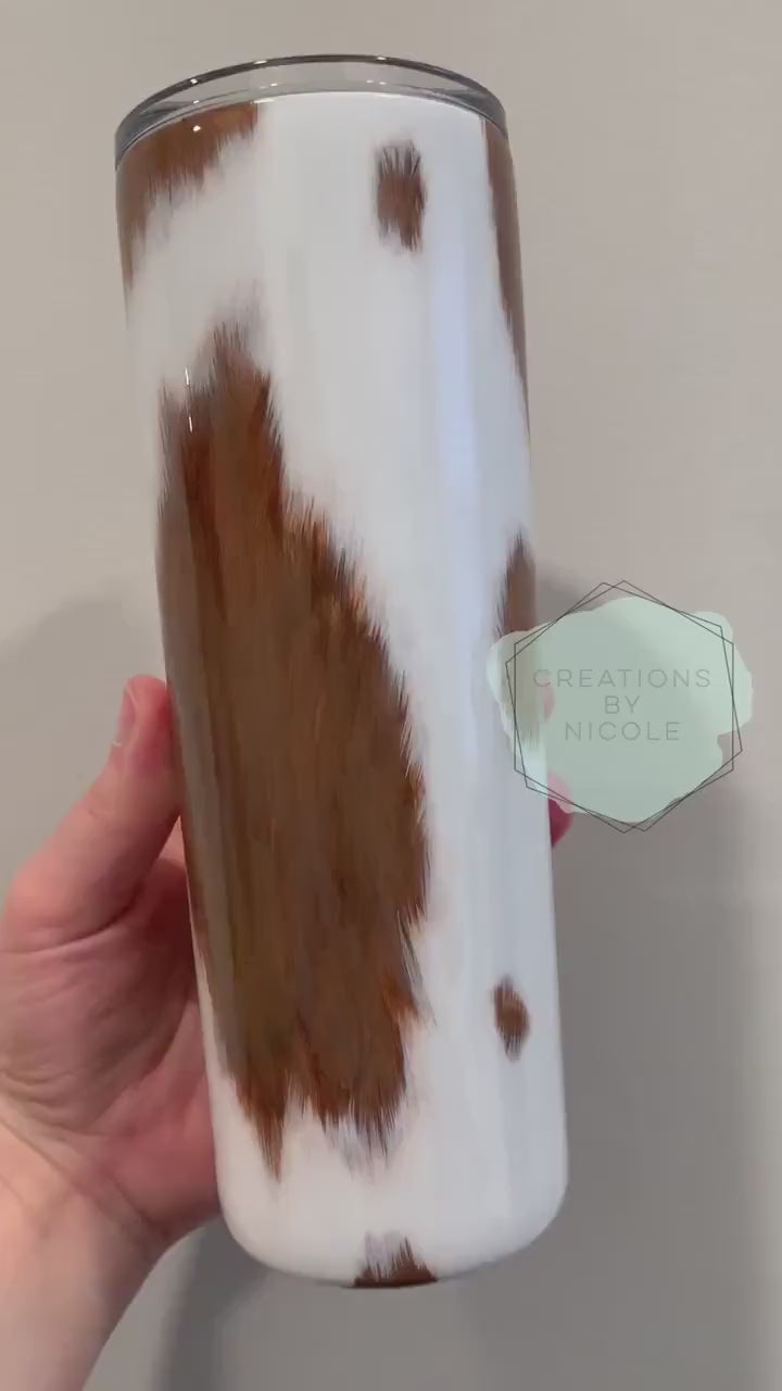 **no two cups will ever be the same! Cowhide spots will vary in design and may not necessarily be in the same placement as pictured.