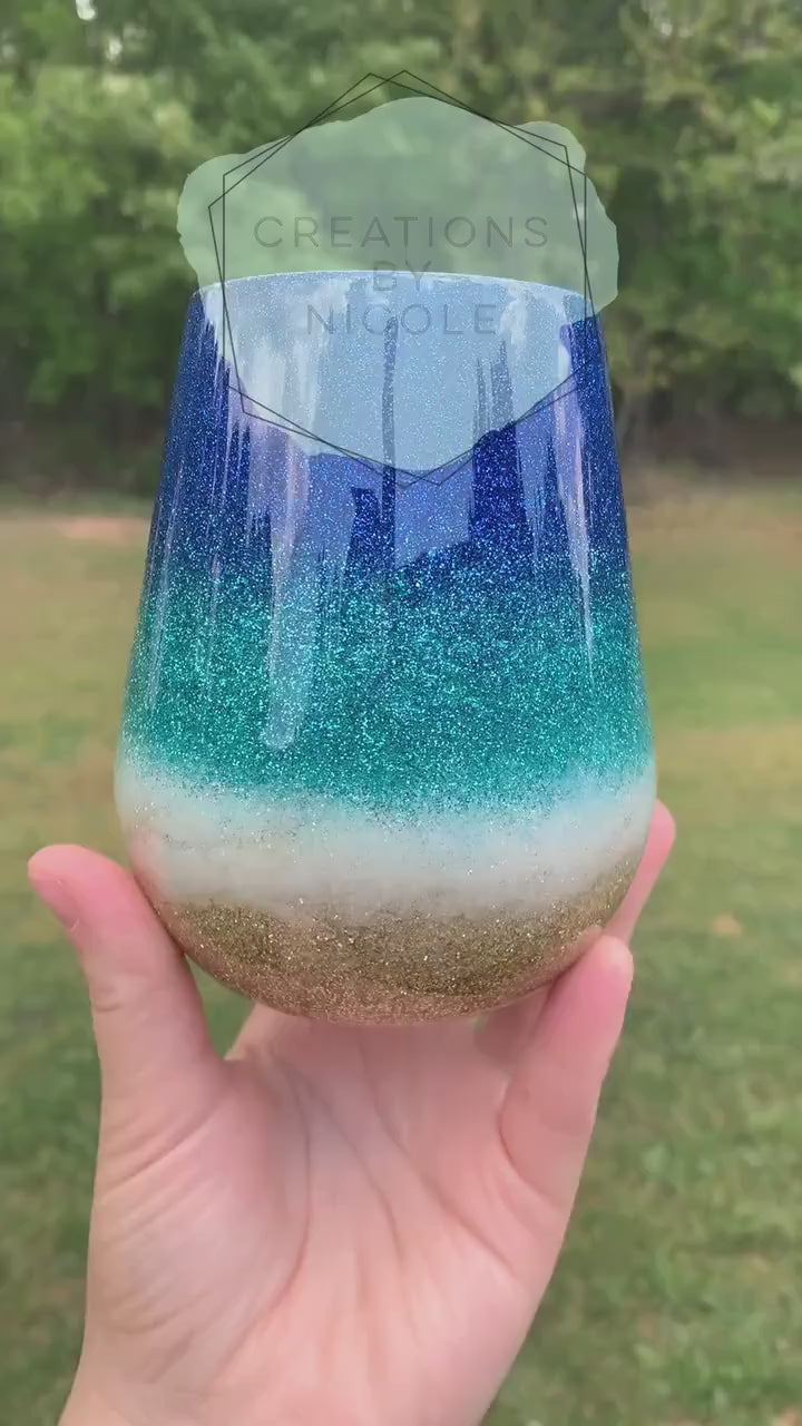 Glitter Ombre Beach themed tumbler, pictured example is the wine tumbler, but can be done on any size tumbler.