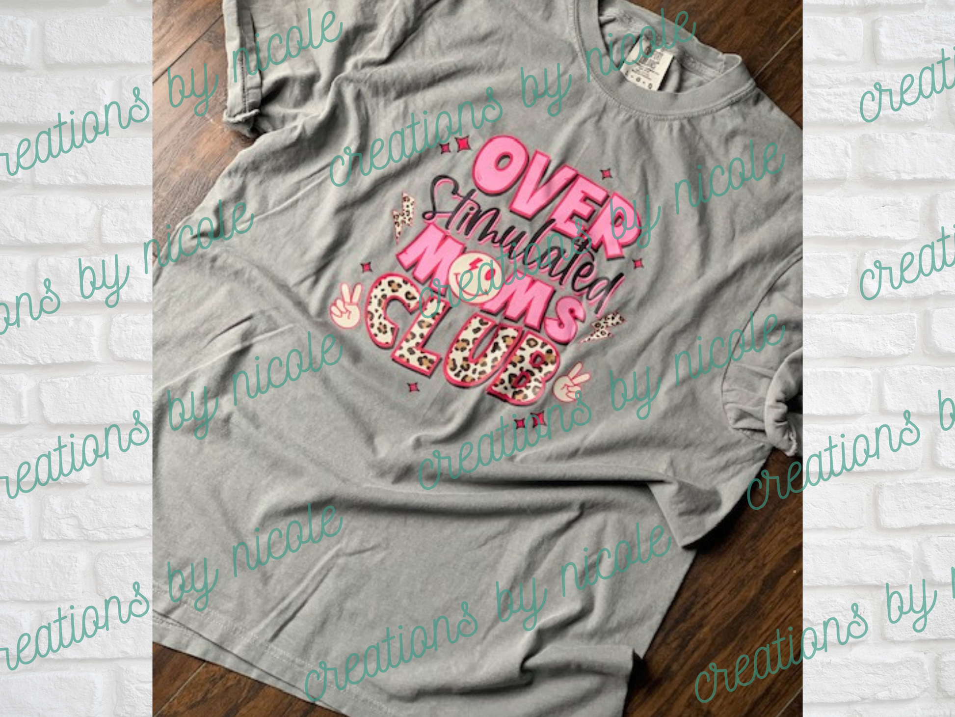 Overstimulated Moms Club on Grey 100% cotton Comfort Colors UNISEX shirt.