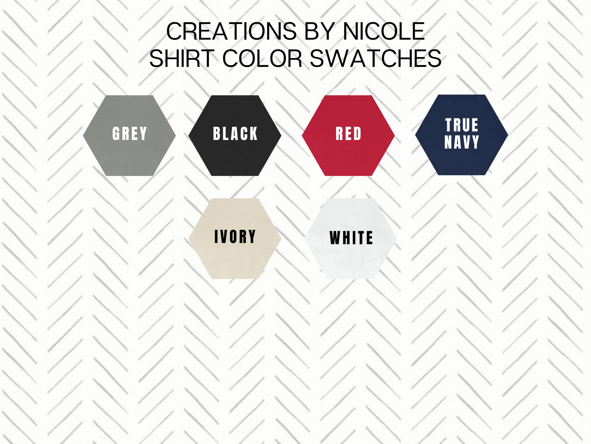 Choose your color for the shirt design. Please be sure to use the size chart when determining what size you will need. Sizes are UNISEX so please keep that in mind when selecting. If the color chosen is not available in the size chosen, we will reach out with the next available option that is the closets to your choice. If we do not hear back within a few days, that alternative will be used.