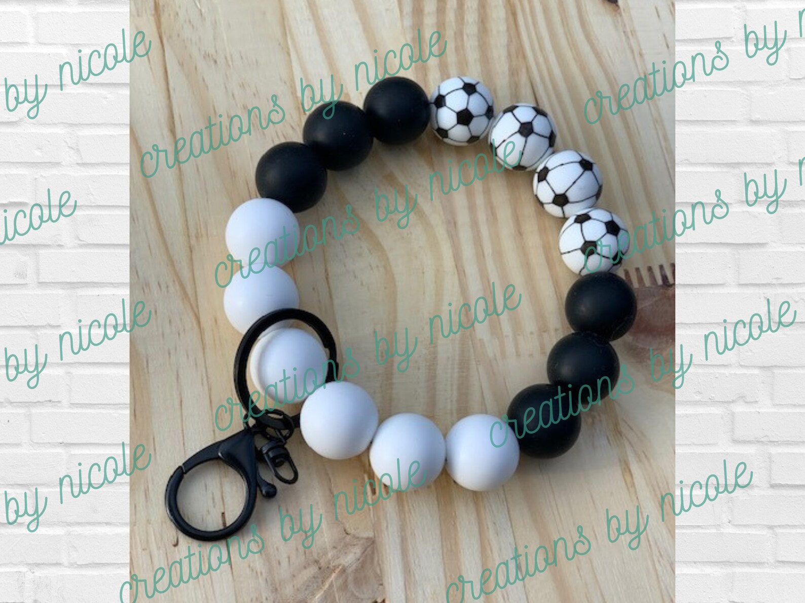 Silicone Beaded Wristlet Keychain Lobster Claw Key Ring Soccer Ball Soccer Mom